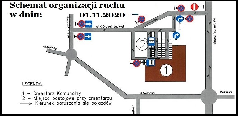W Dniu Wszystkich Świętych wjazd na parking przy Cmentarzu Komunalnym w Mielcu będzie się odbywał się od strony ulicy Partyzantów – ulicą Królowej Jadwigi, która w tym dniu będzie drogą jednokierunkową. Wyjazd będzie możliwy tylko w kierunku obwodnicy.