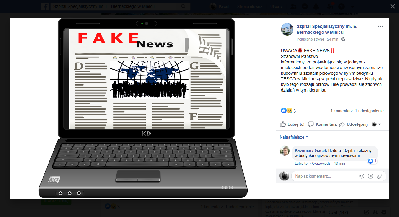 Szpital Specjalistyczny w Mielcu w specjalnym komunikacie zdementował tę informację określając ją jako „fake news”. – Pojawiające się w jednym z mieleckich portali wiadomości o rzekomym zamiarze budowaniu szpitala polowego w byłym budynku TESCO w Mielcu są w pełni nieprawdziwe. Nigdy nie było tego rodzaju planów i nie prowadzi się żadnych działań w tym kierunku – przekazuje lecznica.